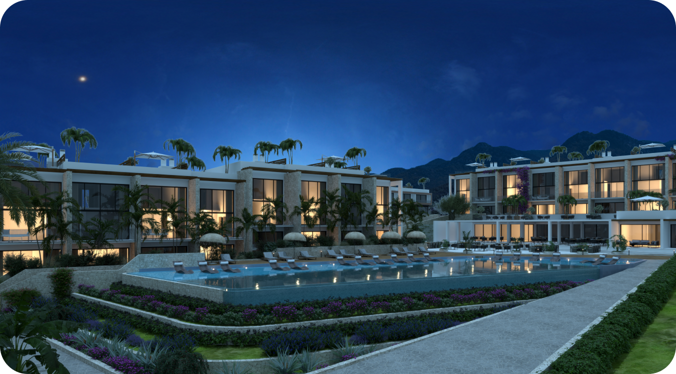 О комплексе:Расположенный в одном из самых популярных регионов Северного Кипра - Эсентепе, в окружении оливковых деревьев, этот проект позволяет его жителям наслаждаться прекрасным видом на Средиземное море и горы Кирении.
