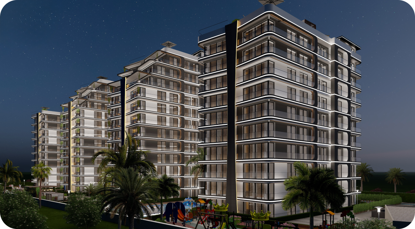 О комплексе:Этот жилой комплекс представляет собой идеальное сочетание природы и роскошной жизни на первой береговой линии Средиземноморья. Проект состоит из роскошных апартаментов и люксовых вилл с шикарными неперекрываемыми видами на Средиземное море и горы.