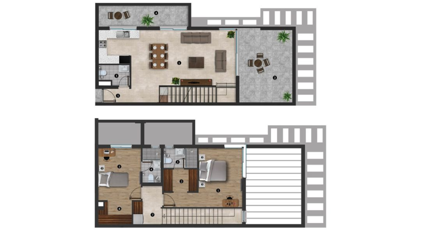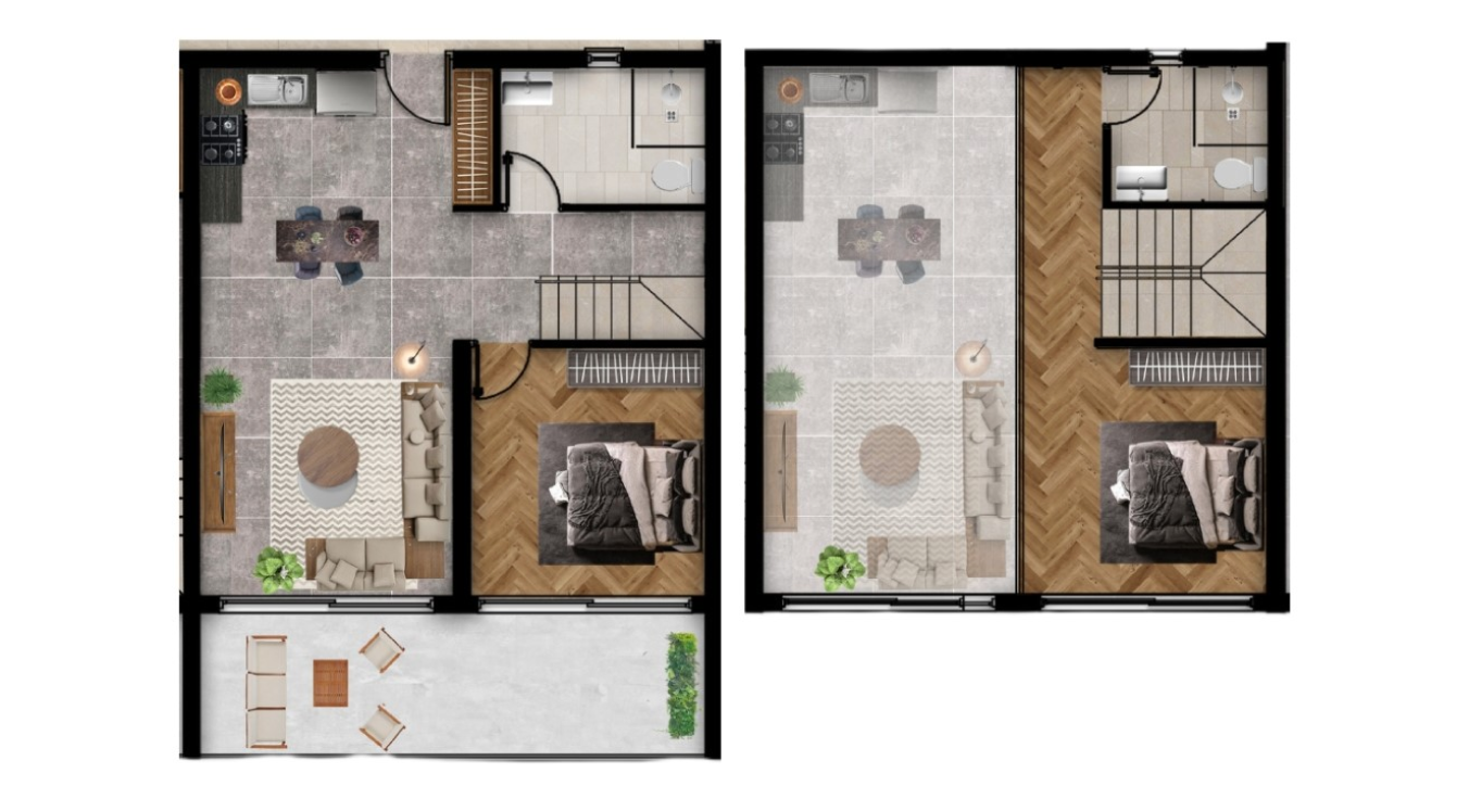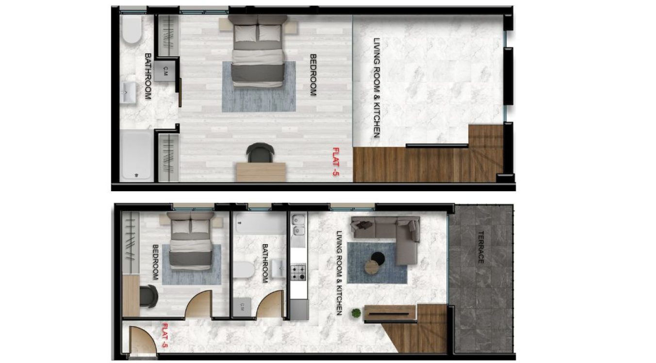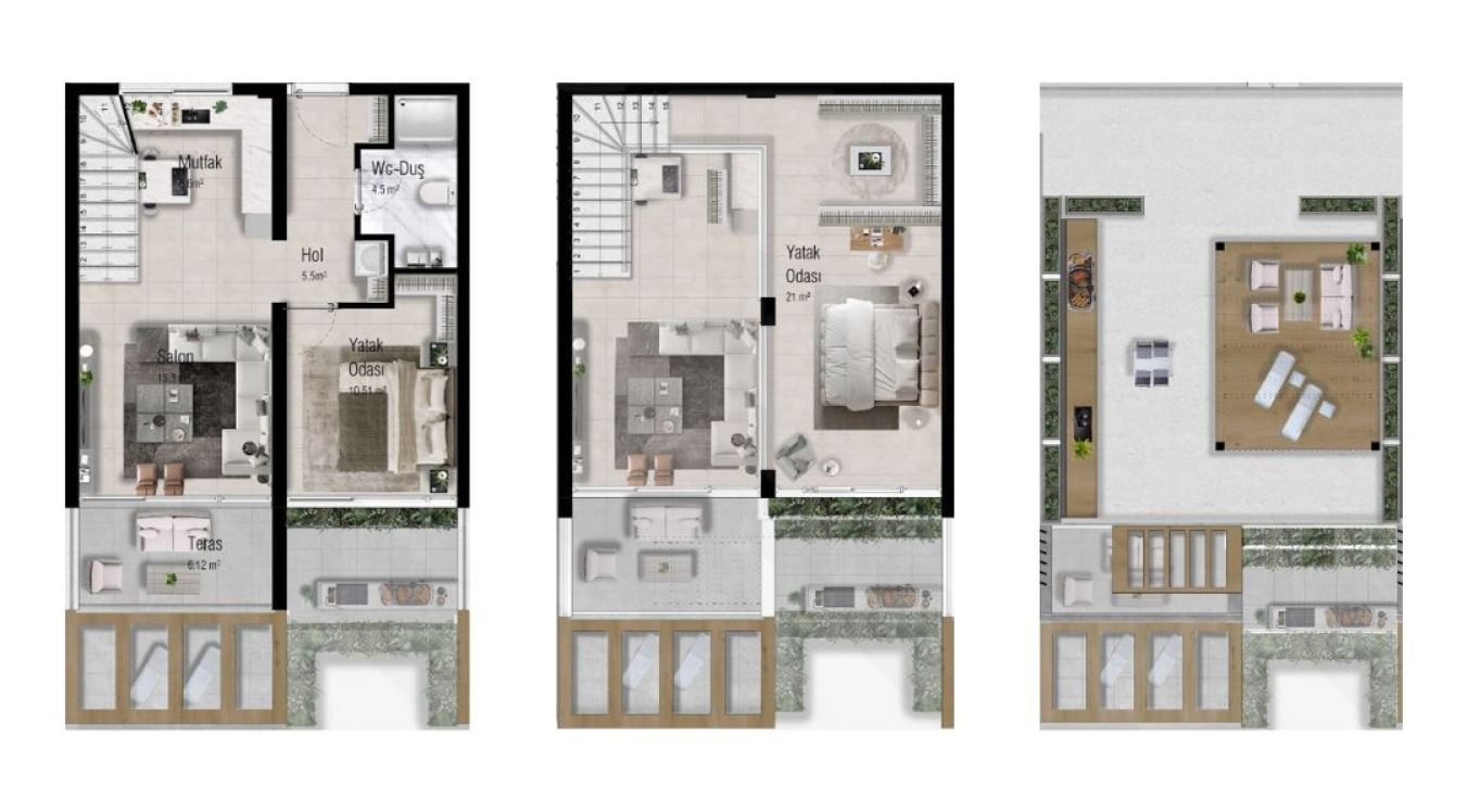 Характеристики объекта- Тип недвижимости: 2+1 Loft Penthouse Площадь: 73 м² (балкон 6м² + терраса на крыше 45м²) Расстояние до моря: 350 м